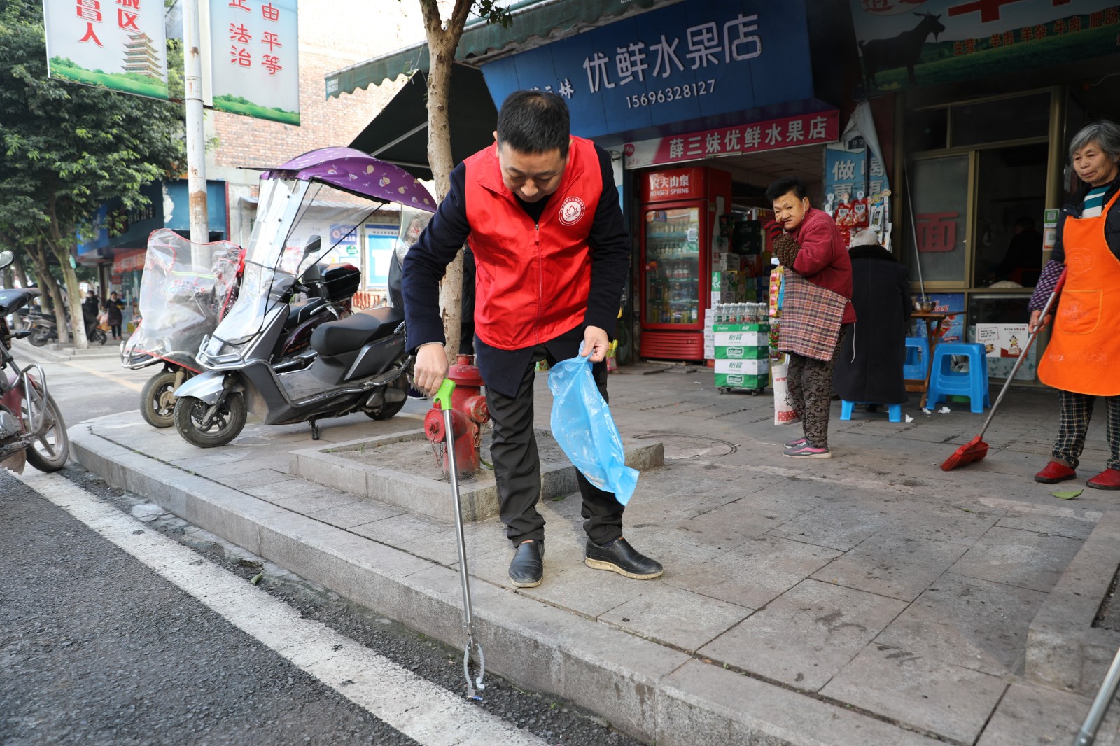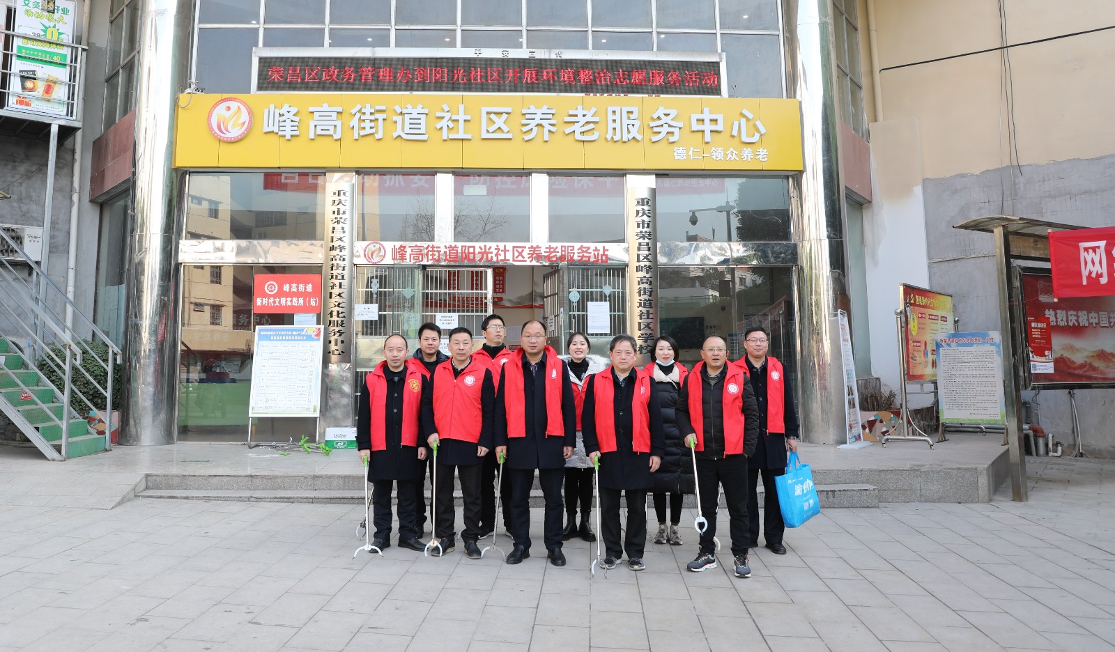 区政务管理办(行政服务中心)志愿者到峰高街道阳光社区为居民清理街道和公园的垃圾,保护环境,人人有责。
